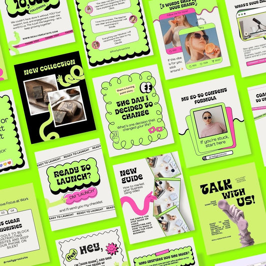 130+ Social Media Instagram Post, Coach Post, Instagram Marketing, Editable Canva Coaching Template, Colorful Social Media Green Neon