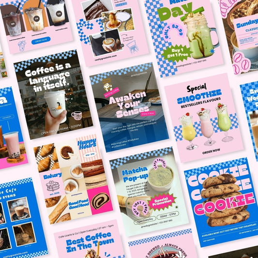 150 Java Cafe Blue Pink Vibrant Pop Colorful Social Media Instagram Post, Coffee Cafe Dessert Resto Theme Editable Canva Template
