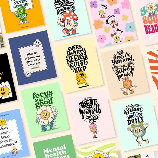 100 Fun Colorful Social Media Instagram Post, Retro Quote, Motivational and Inspirational Quotes, Editable Canva Coaching Templates