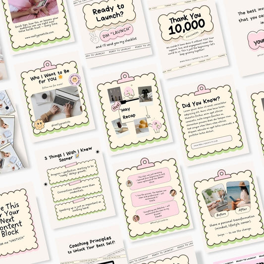 100 Cute Puffy Social Media Instagram, Personal Coach Product Marketing Branding, Editable Canva Template