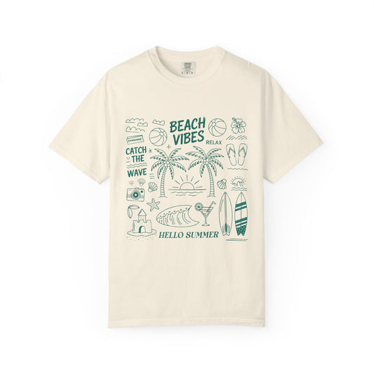 Beach Vibes Unisex Garment-Dyed T-Shirt - Casual Vintage Style for Everyday Wear