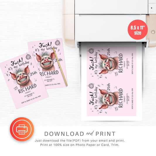 Physical Pained Mentally Drained Funny Birthday Party Invitation