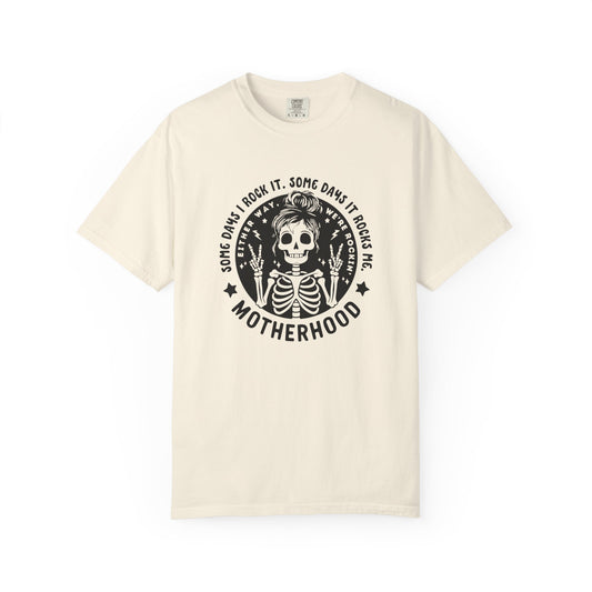 Some days I rock it. Some days it rocks me. Motherhood Unisex Garment-Dyed T-Shirt - Casual Vintage Style for Everyday Wear