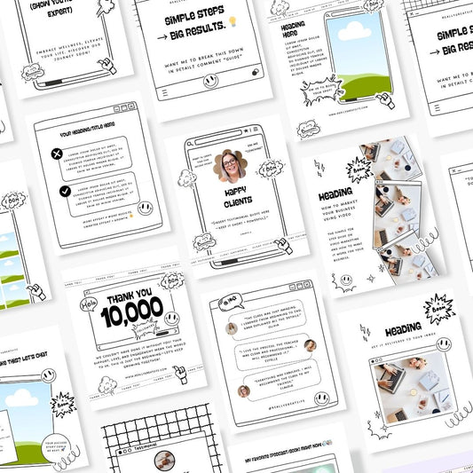 50 Comic Black White Social Media Instagram Post, Digital and Physical Product Personal Brand, Editable Canva Template