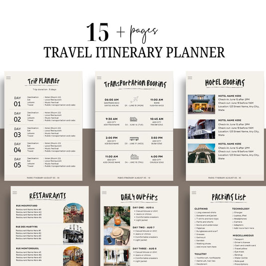 Editable Travel Itinerary Template | Trip Itinerary | Printable Travel Guide | Travel Agent Planner | Holiday Honeymoon Vacation Planner