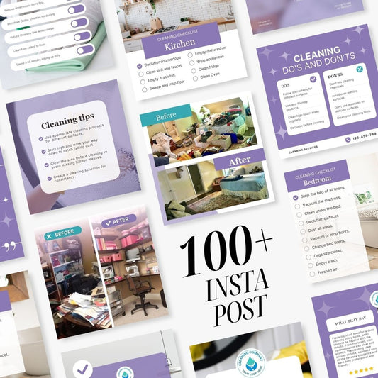 Cleaning Services Bundle, Business Forms, Door Hanger, Flyers, Business Card, Social Media Post, Canva Templates