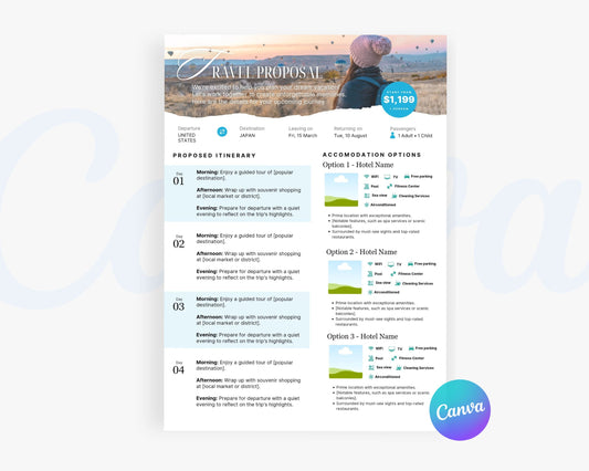 Travel Proposal Template, Travel Proposal Flyer, Editable Canva Templates 01
