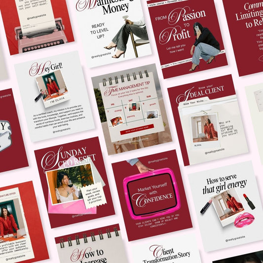 Wellness & Mindset Coach Social Media Manager SMM Posts and Stories Instagram 30 day Marketing Digital Canva Red Theme