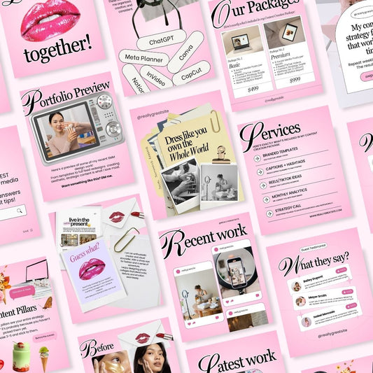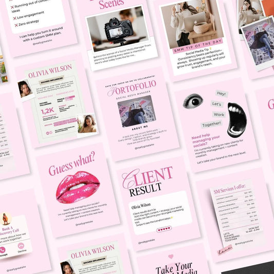 Girly Social Media Manager SMM Posts and Stories Instagram 30 day Marketing Digital Social Canva Pink Theme