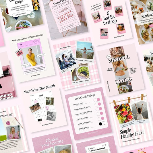 Wellness Coach Social Media Manager SMM Posts and Stories Instagram 30 day Marketing Digital Canva Pink Theme