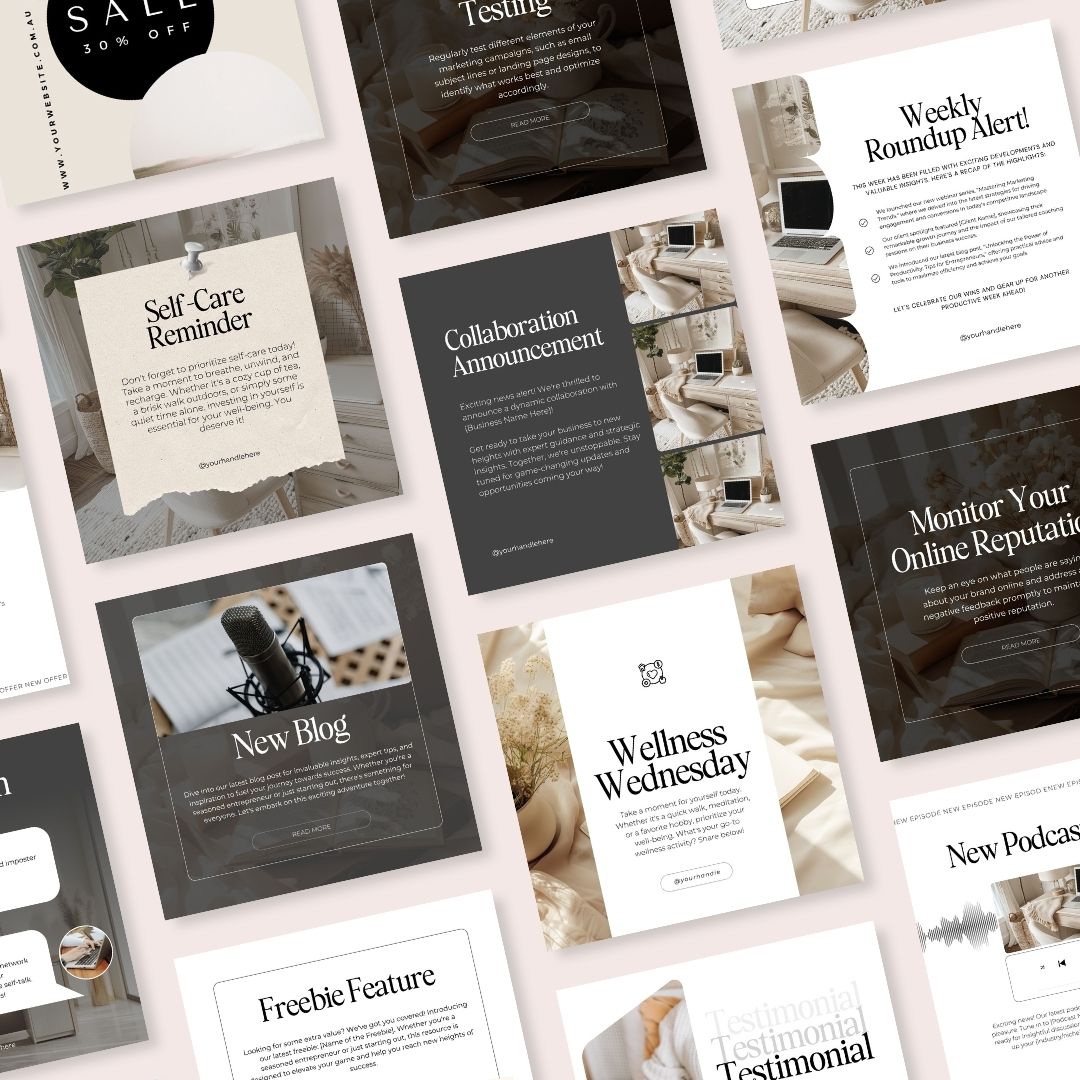 Transform your Instagram feed with our collection editable Canva templates! these templates are designed to make your feed stand out. Elevate your social media presence and captivate your audience with professionally designed templates that are easy to use and customize. Instantly download and start curating a beautiful Instagram feed.