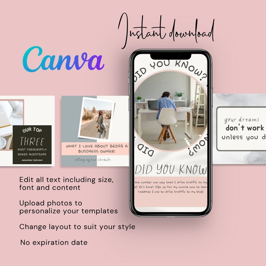 Transform your Instagram feed with our collection editable Canva templates! these templates are designed to make your feed stand out. Elevate your social media presence and captivate your audience with professionally designed templates that are easy to use and customize. Instantly download and start curating a beautiful Instagram feed.