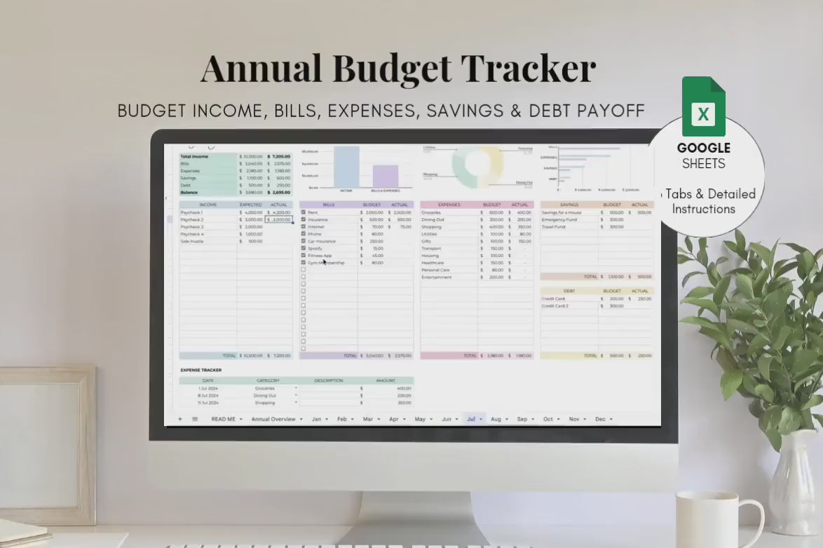 Annual Budget Spreadsheet Template, Annual Budget, Monthly Tracker, Income and Expenses Tracker, Google Sheets
