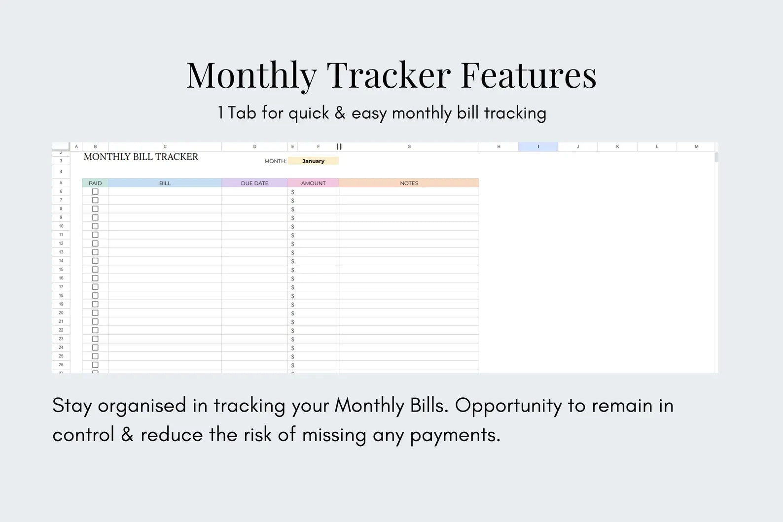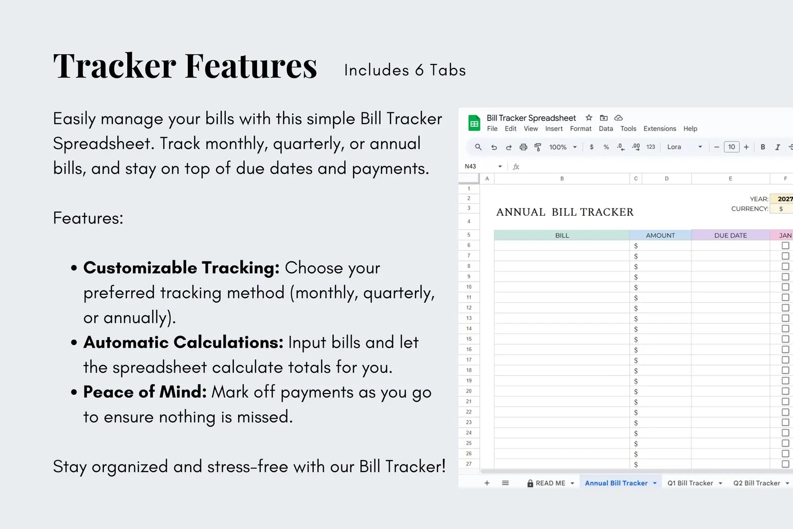 Stay on top of your bill payments with our easy-to-use Bill Tracker Calendar! Whether you prefer to track monthly, quarterly, or annually, this spreadsheet makes it simple to record due dates and actual payment dates—ensuring you never miss a payment again.
