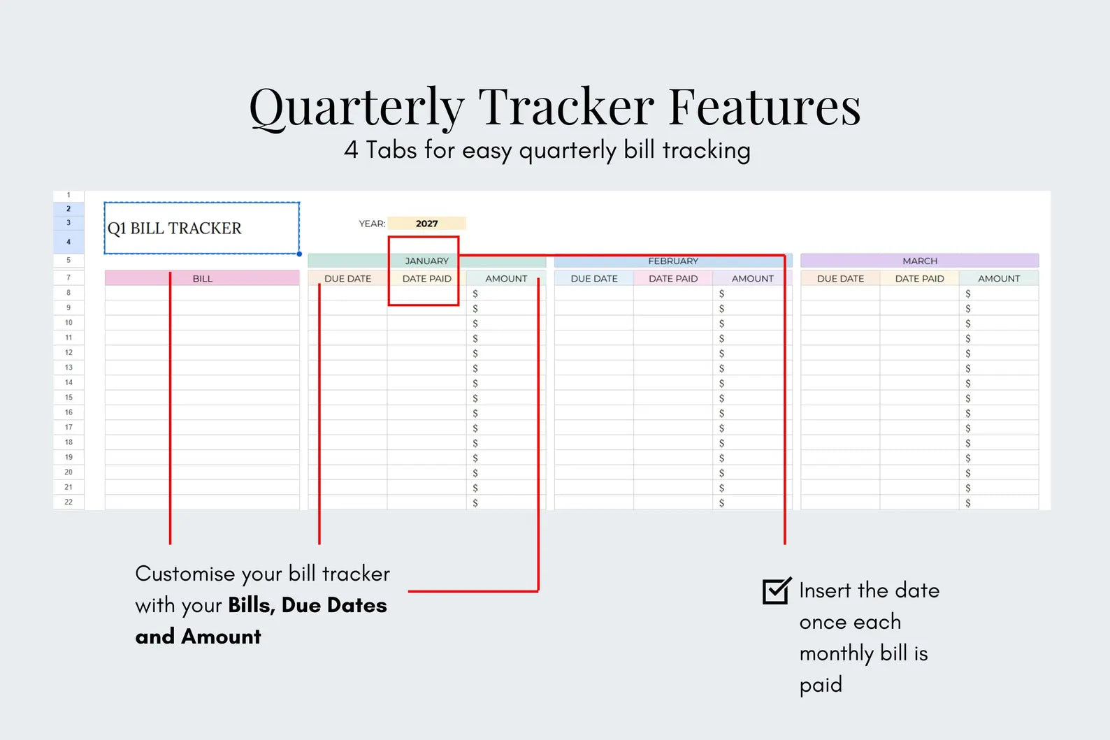 Customizable Tracking: Track bills monthly, quarterly, or annually.