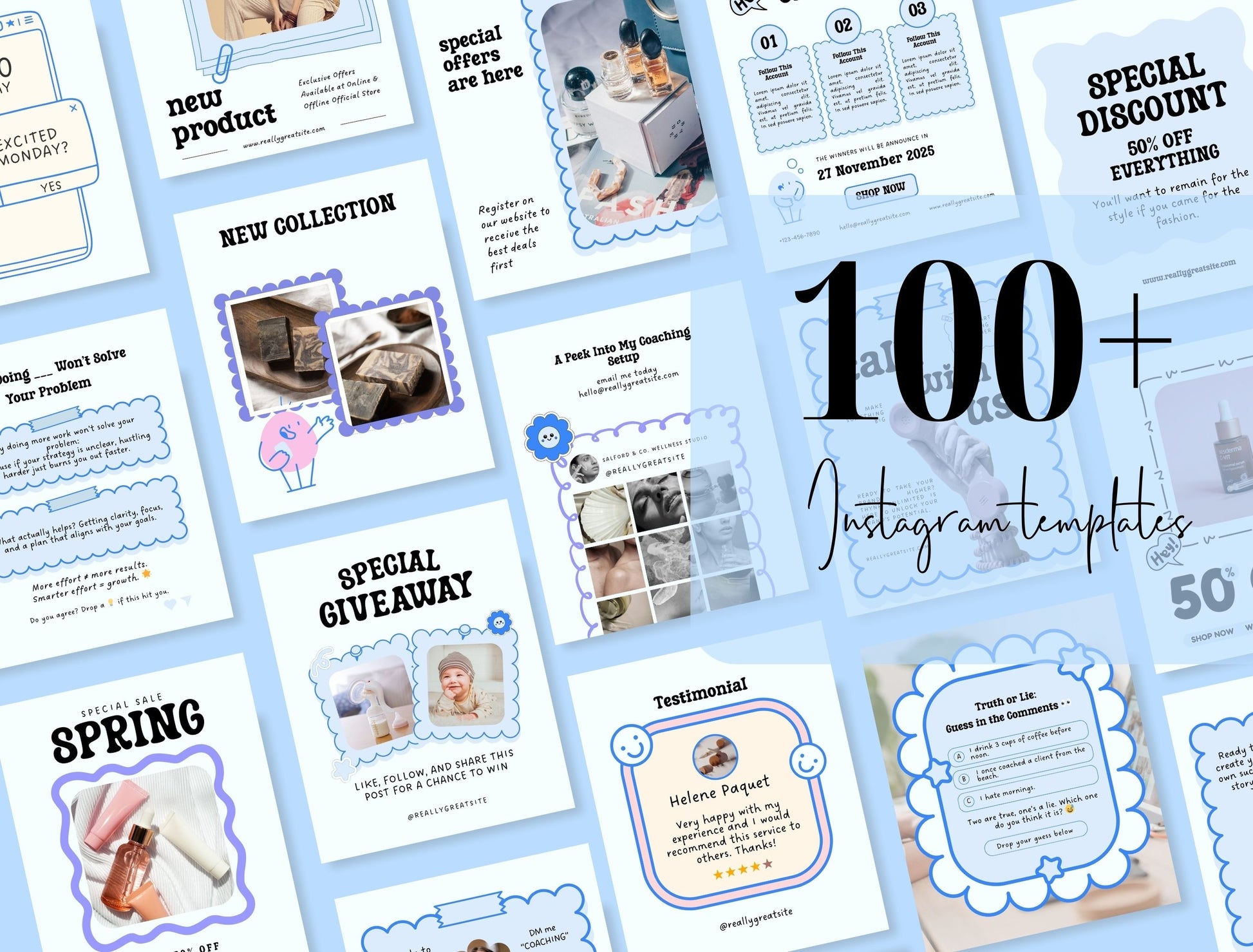 Branding Kit Luckygrin Canva Templates Product Fashion Coach Etsy Kit Light Blue Theme