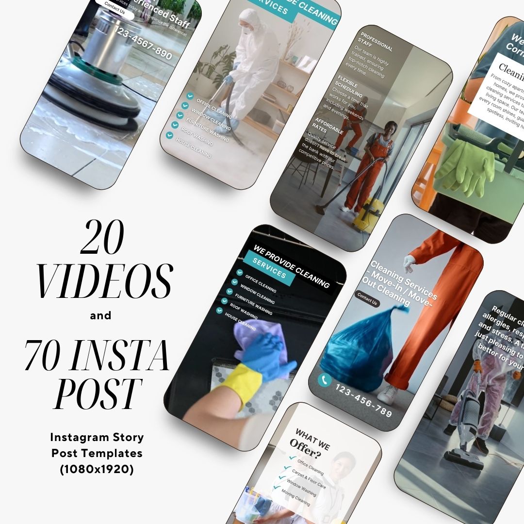 Cleaning Services Bundle, Business Forms, Door Hanger, Flyers, Business Card, Social Media Post, Canva Templates