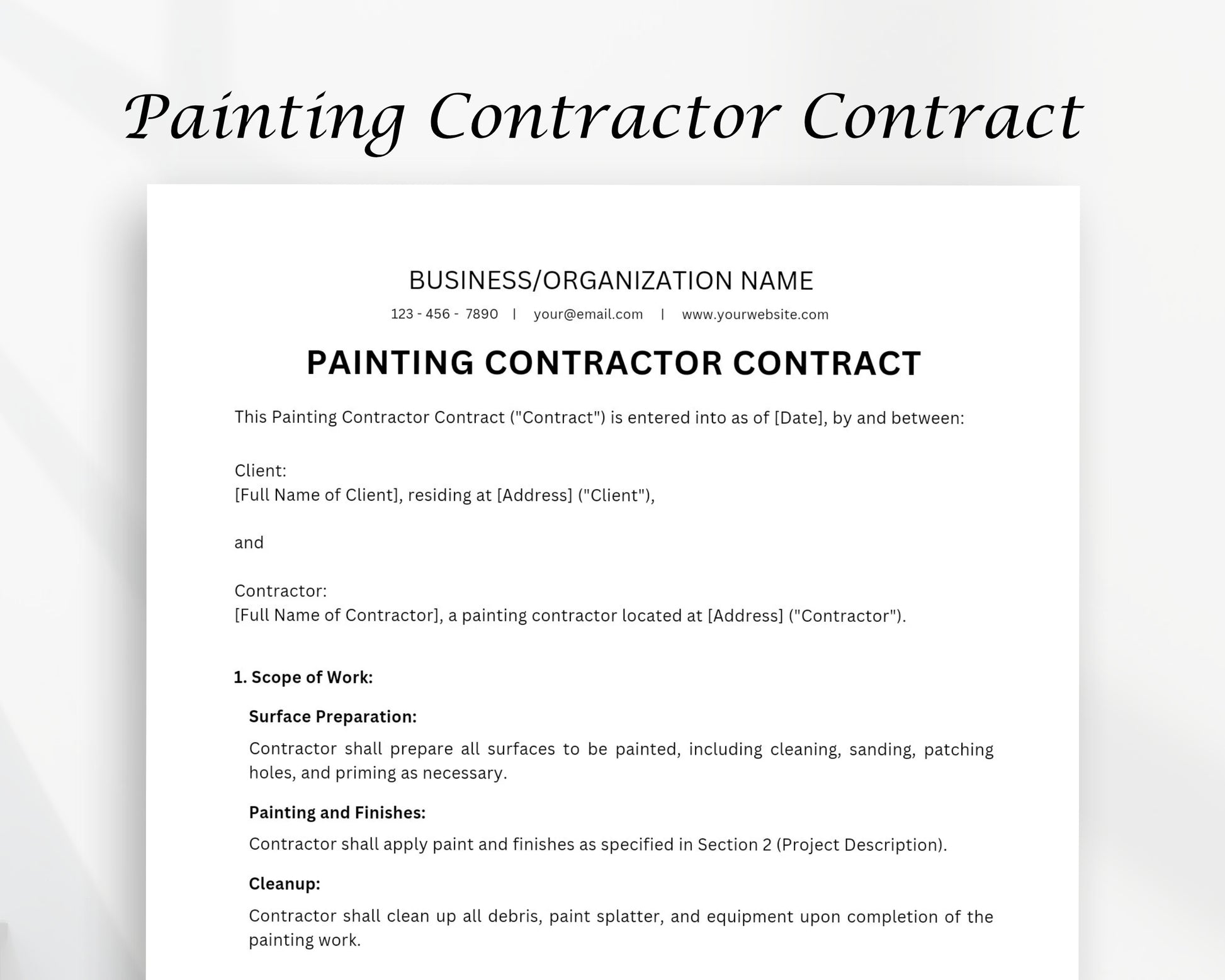Painting Contractor Contract Printable Form, Edit in Canva, Digital