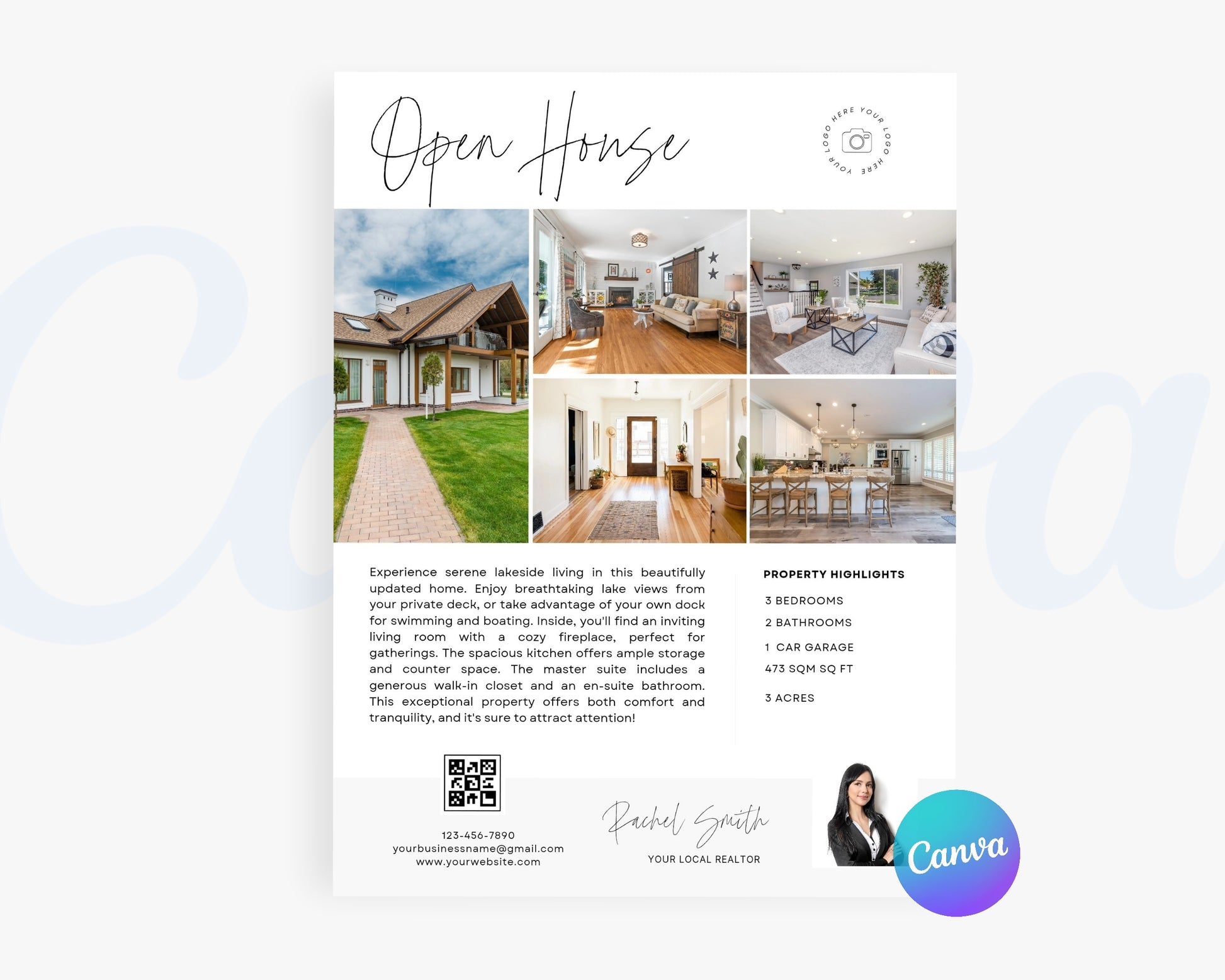 Real Estate Flyers, For Sale Flyer Marketing Flyer, Open Listing, Edit in Canva - REDF03