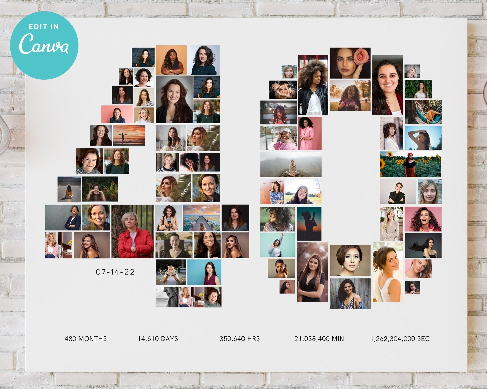 EDITABLE 40 Years Photo Collage, 81 Photos, Canva, DIGITAL