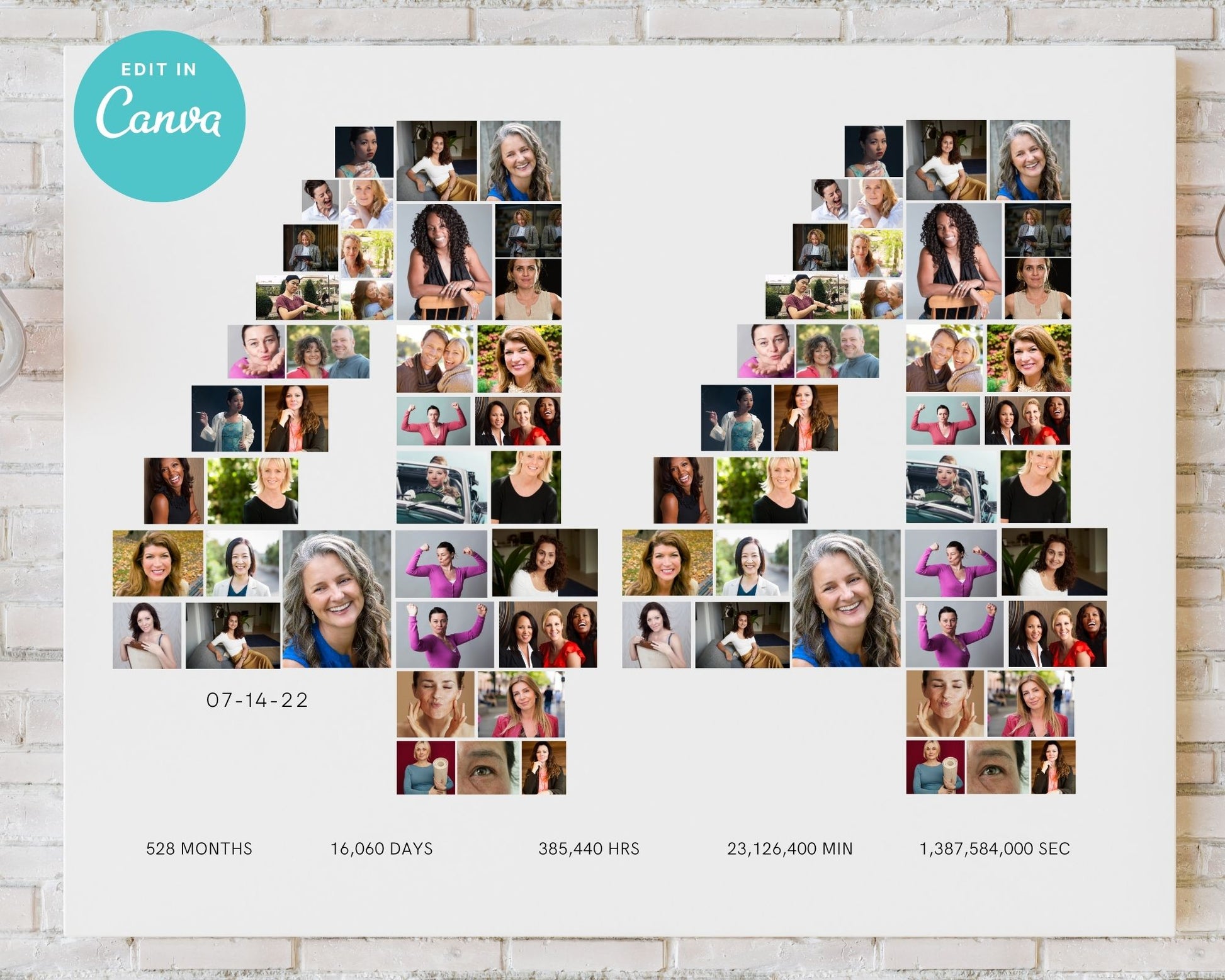 EDITABLE 44 Years Photo Collage, 82 Photos, Canva, DIGITAL
