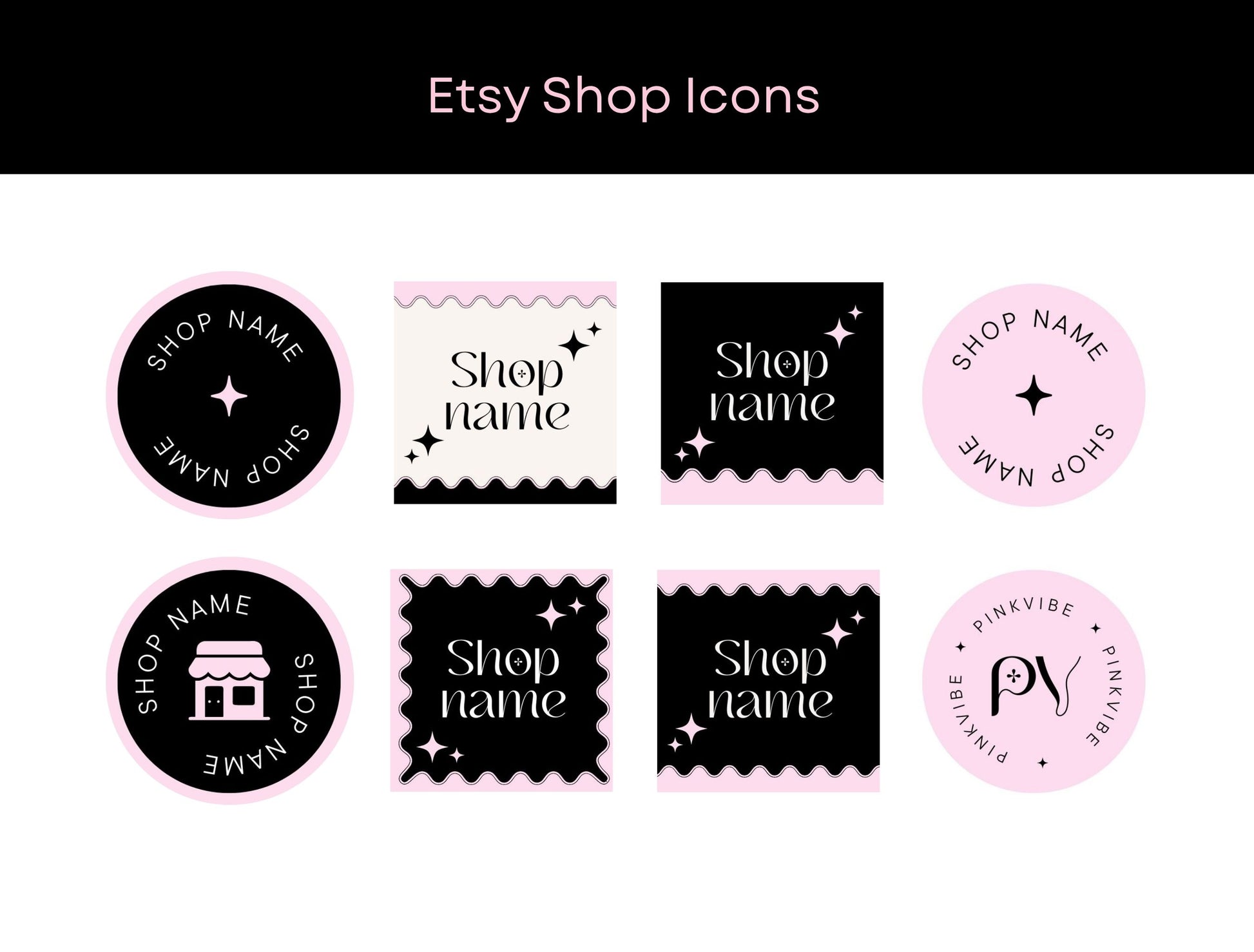 Etsy Shop Kit Pinkvibe Bundle, Editable Canva Templates, Product Listing Photos Mockup, Etsy Seller Retro Drawn Store Branding