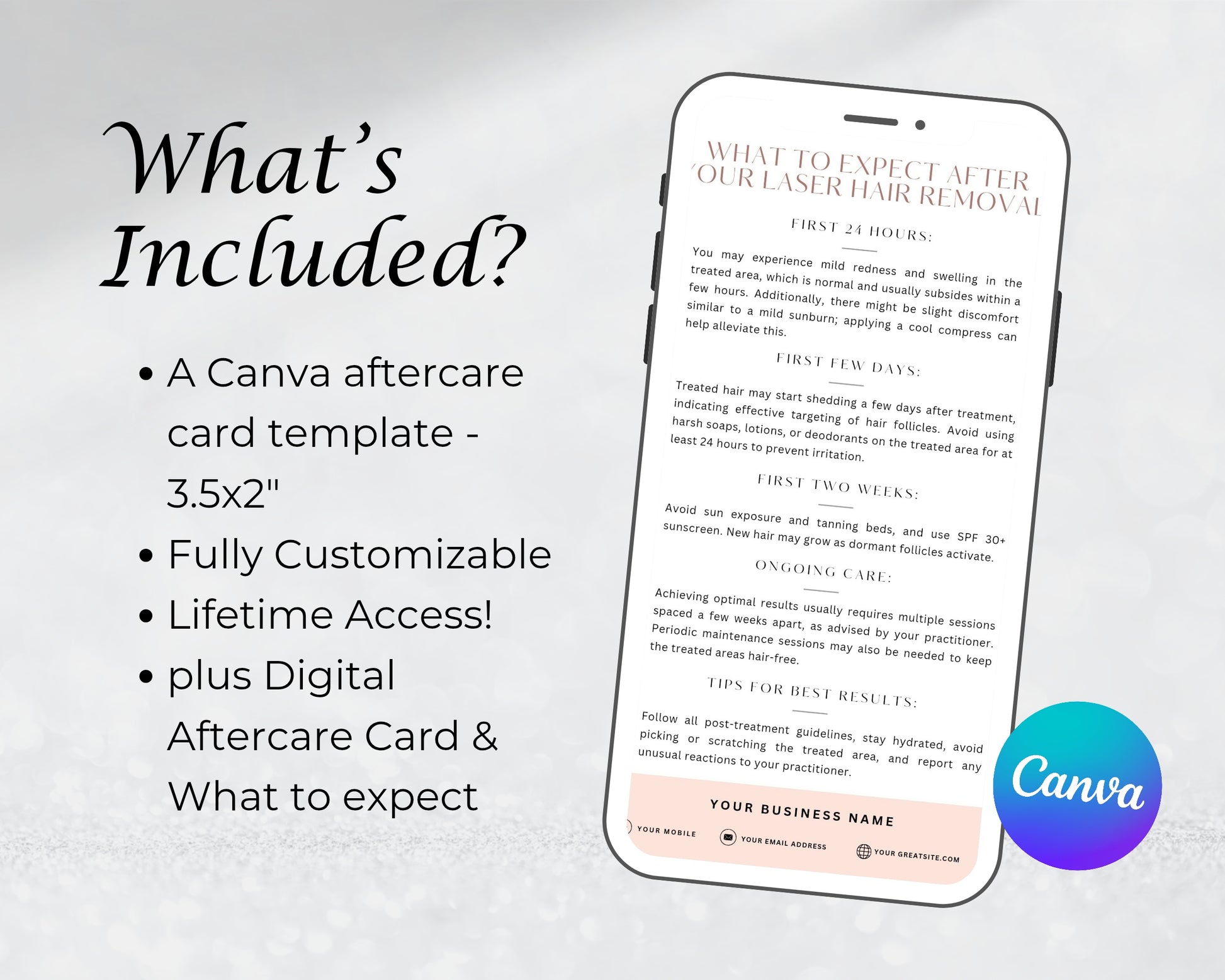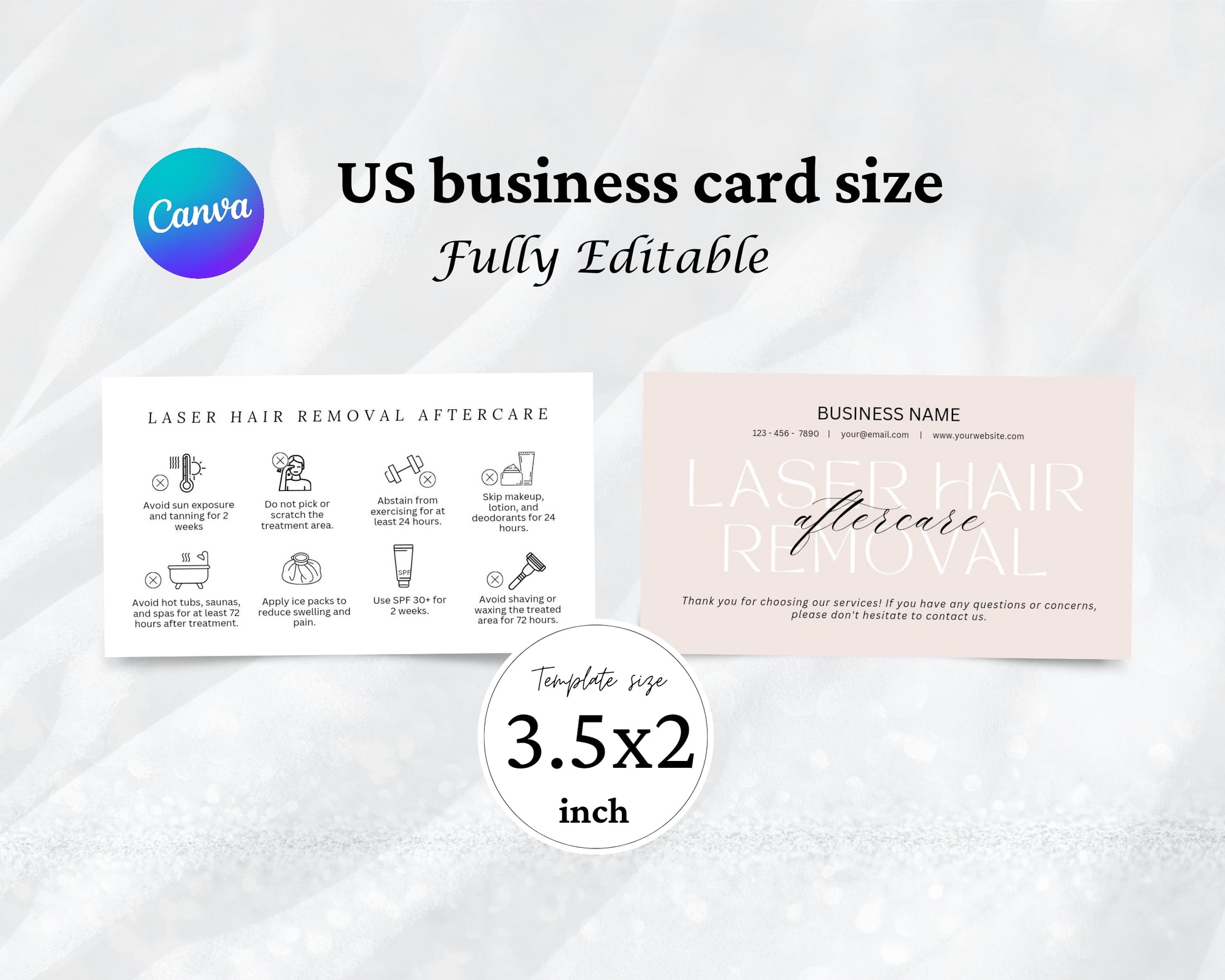Laser Hair Removal Care Card, Aftercare Card, Edit in Canva