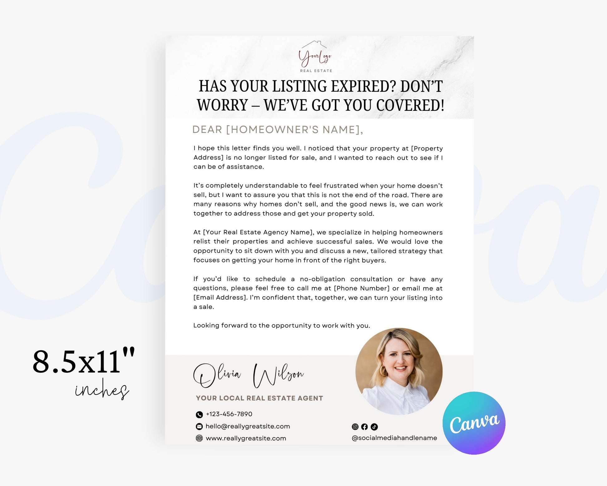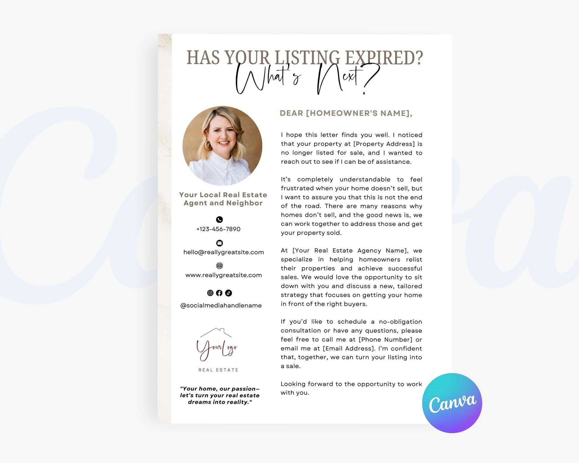 Expired Listing Real Estate Flyers, For Sale Flyer Marketing Flyer, Edit in Canva - REDF19