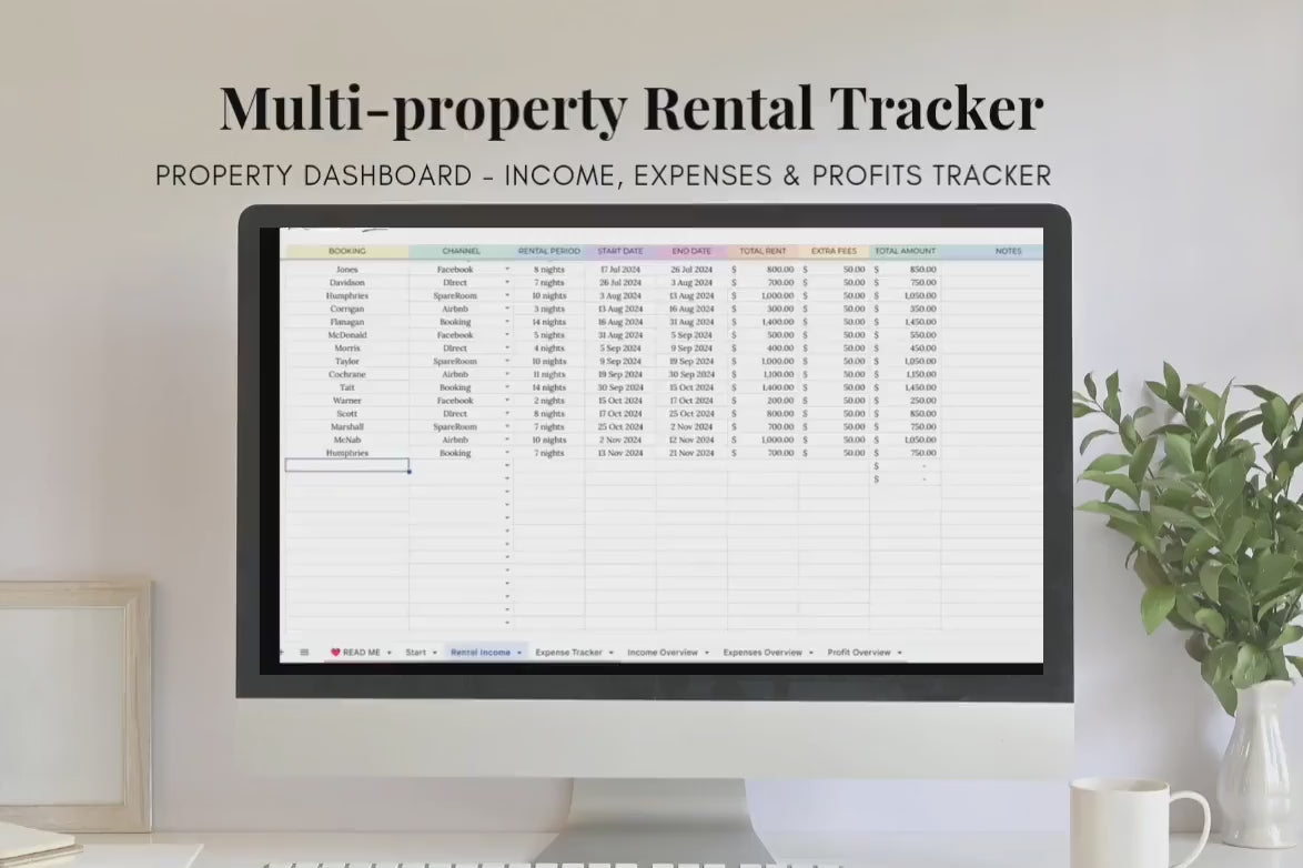 Multi Rental Property Income & Expense Template, Income and Expenses Tracker, Rental Property Management, Google Sheets