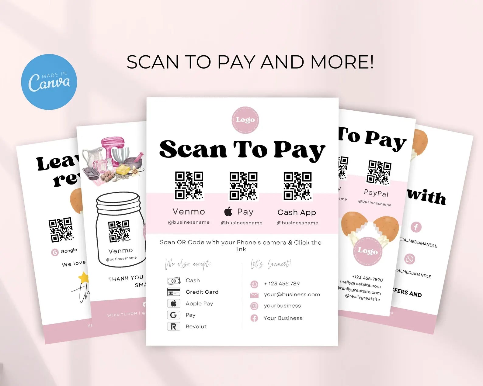Scan to pay Forms Printable, Virtual tip jar, Leave us a review form, Pink Business signs, Editable Canva Template, Small Business