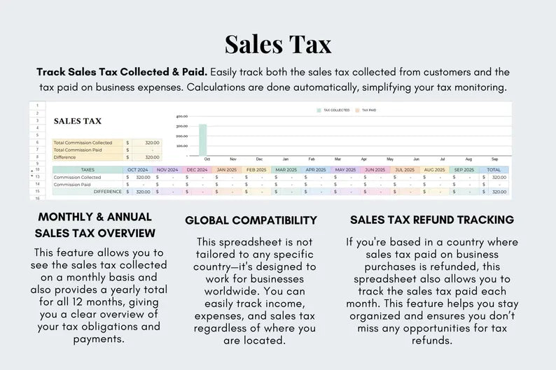 Sales Tax/VAT Tracking: Easily track sales tax collected and paid.