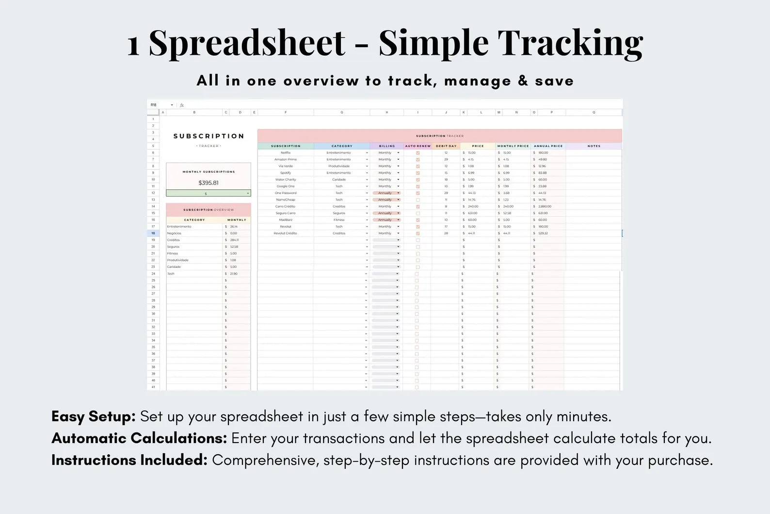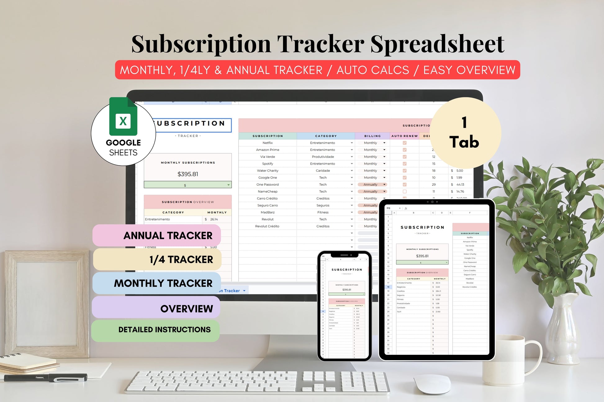 Subscription Tracker Spreadsheet, Membership Checklist, Monthly Subscription, Subscription Organizer, Spending Tracker, Google Sheets