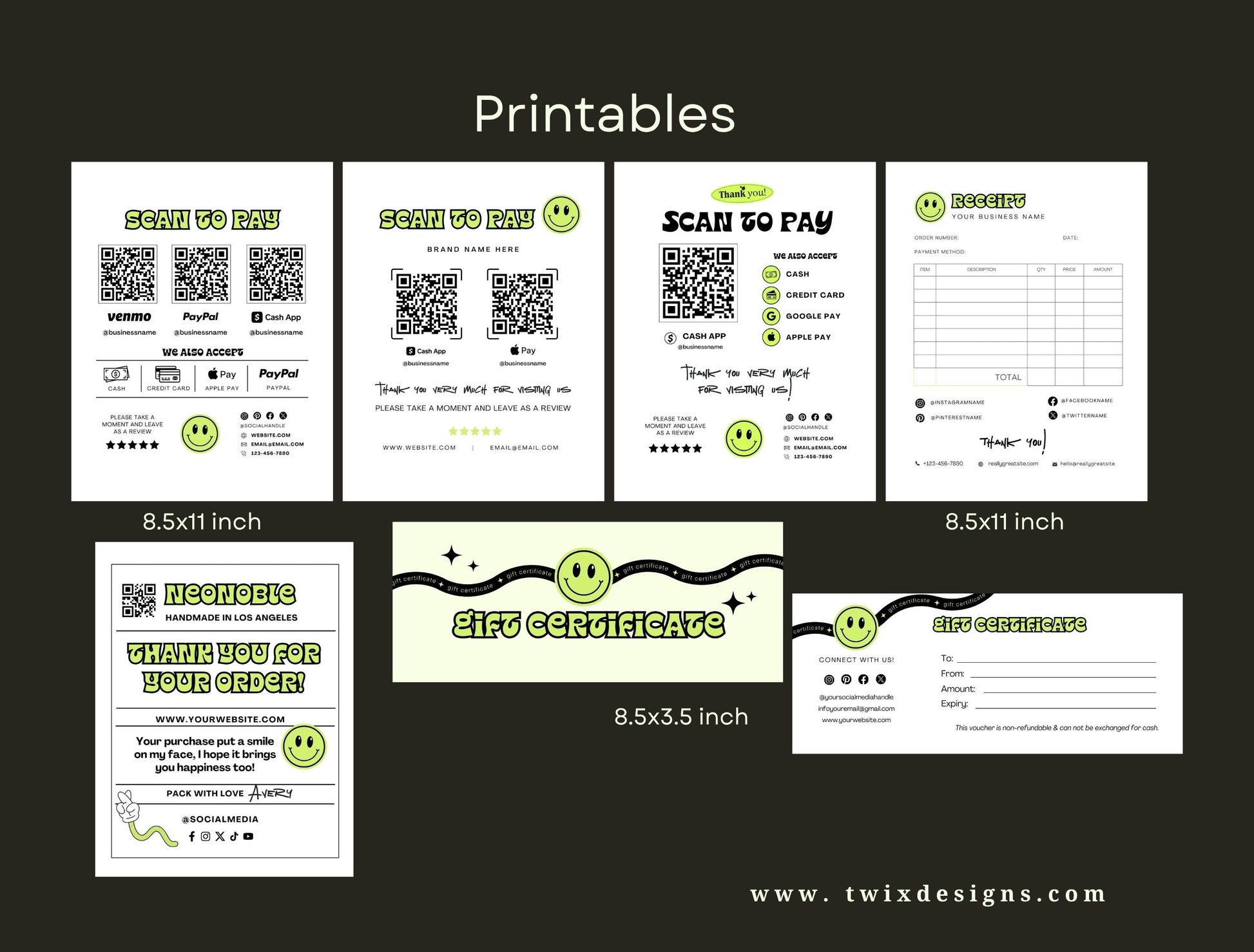 Small Business Printable Kit Canva Templates – Thank You Card, Loyalty Card, Gift Certificate, QR Code Payment NeoNoble Theme