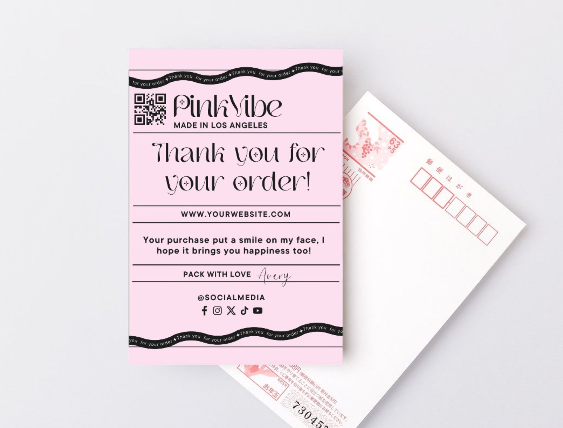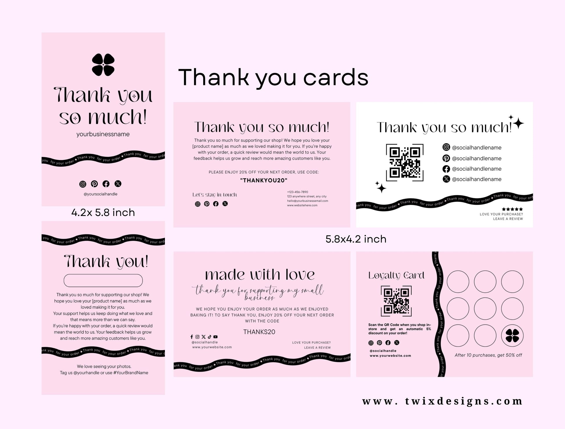 Small Business Printable Kit Canva Templates – Thank You Card, Loyalty Card, Gift Certificate, QR Code Payment Pinkvibe Theme