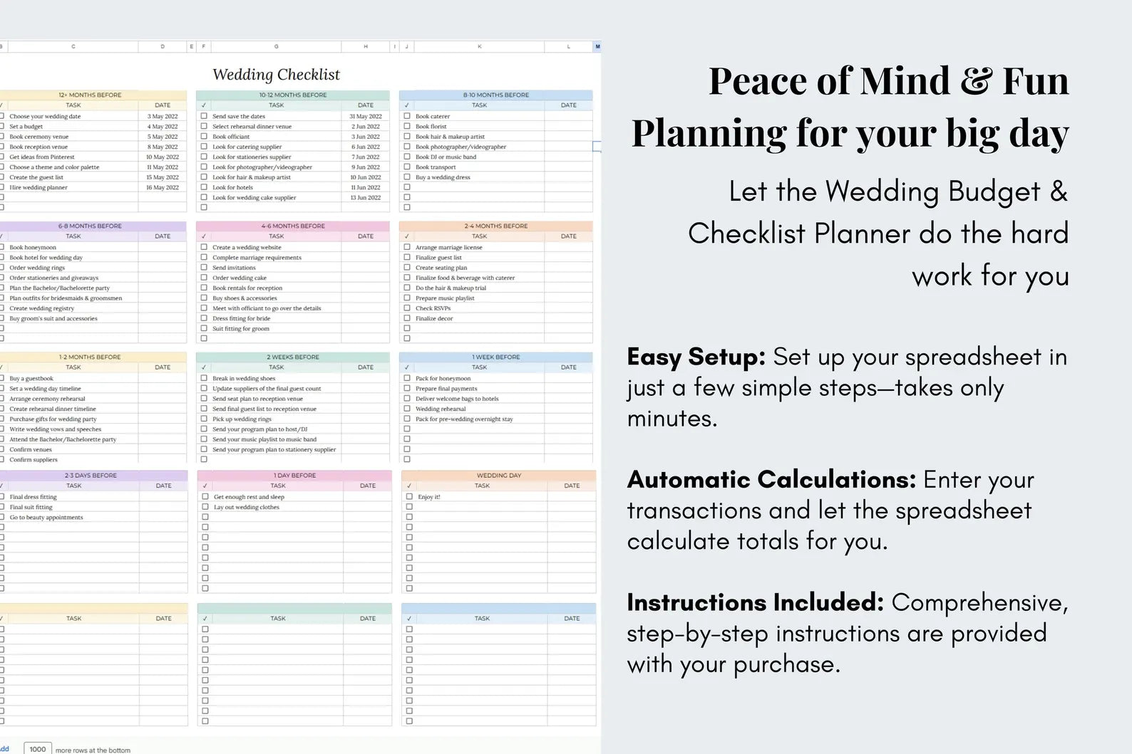 Wedding Planner Spreadsheet, Budget Tracker Wedding Timeline Checklist Wedding Itinerary Wedding Organiser, Checklist To do, Google Sheets